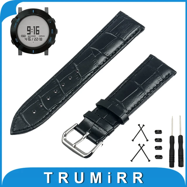 | [해외] 24 미리메터 정품 가죽 손목 시계 스테인레스 스틸 버클 스트랩 + 러그 어댑터 + 도구 suunto 코어 시계 밴드 손목 벨트 팔찌 |