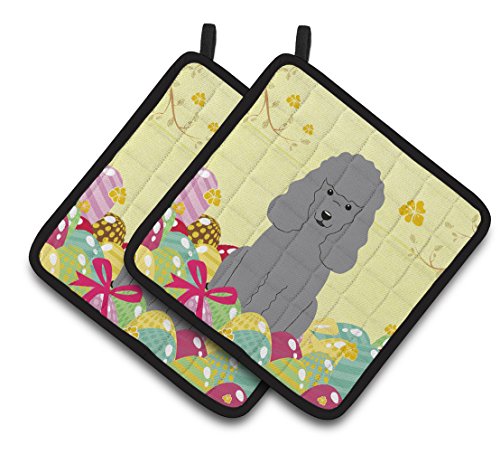 Caroline's Treasures Easter Eggs Poodle Silver Pair of Pot Holders, 7.5HX7.5W, Multicolor