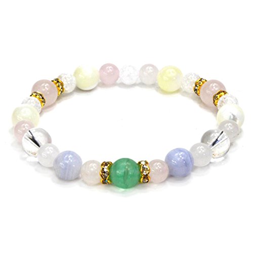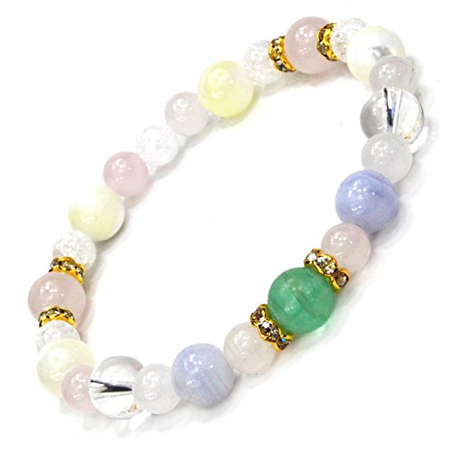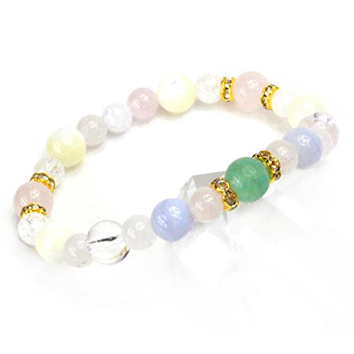 ◆마음 위로해지는 색조의 그린 플로우 라이트를 주요하석에 색취 훌륭한 천연석 파워 스톤에디자인된 콤비네이션 팔찌입니다. 블루나 핑크의 컬러풀한 색조와 크랙 쿼츠의 키라《메키》가 멋지게 융합한 패셔너블 파워 스톤 팔찌입니다.
