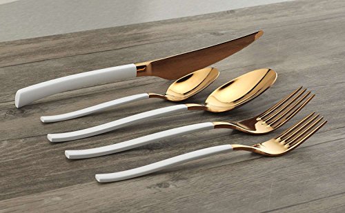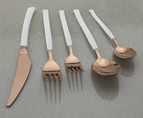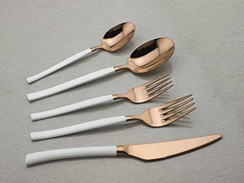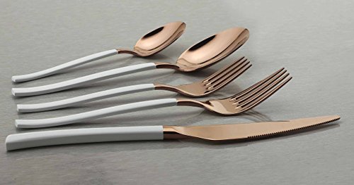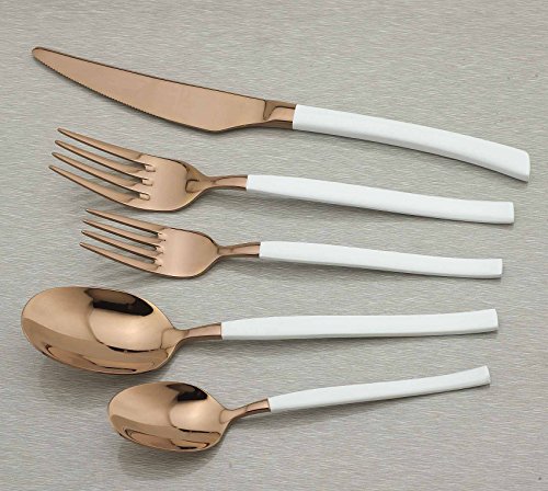 Flatware Set Rose Gold (Copper) & White with Titanium and Enamel Coated,18/10,5 Piece Service for 1,Stainless Steel Dinnerware set,Cutlery set, Fork Spoons Knife Tableware
