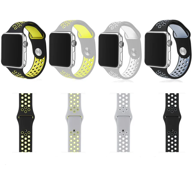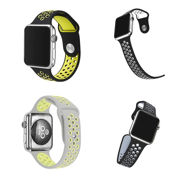 | [해외] 2016 새로운 유연한 통기성 실리콘 스포츠 밴드 apple watch 시리즈 1 및 2 42 미리메터 38 미리메터 고무 손목 시계 블랙 |