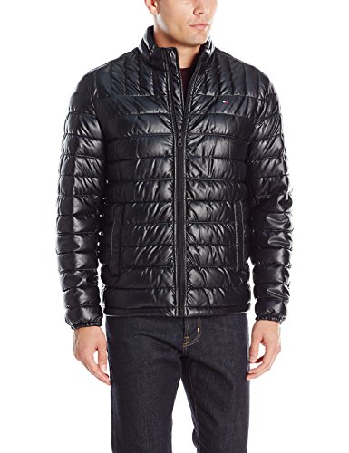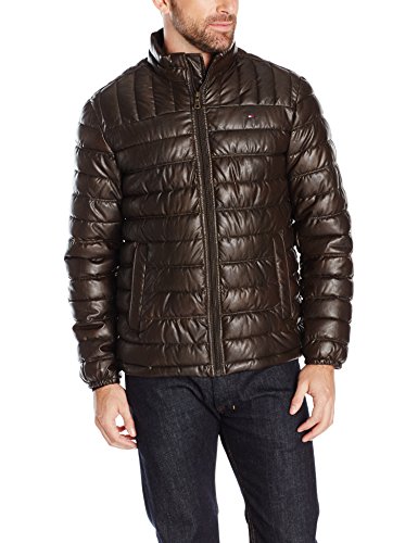 Studio : Tommy Hilfiger Men's Outerwear Publisher : Tommy Hilfiger Men's Outerwear Binding : Apparel Product Description Lightweight lamb touch faux leather quilted ultra loft poly-filled puffer jacket with two lower zipper pockets and zip front closure. 0