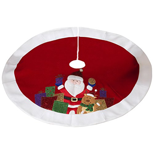 Gerson 48" Velvet Tree Skirt With Fleece Border, Glitter Applique & Metallic Embroidery