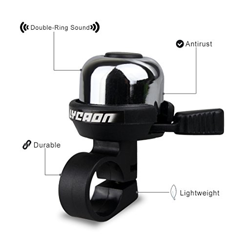 Studio : LYCAON Publisher : LYCAON Product Description LYCAON Bike Bell ¨C Bicycle Accessories BEST Material Makes BEST cycling bell LYCAON bicycle bell makes up of high strength materials that are durable, damage-resistance and lasting, producing clearly loud and wonderful sound. Easy to Use and Widely Applicable Using the screwdriver we provide to set up a bell within minutes. 1. Unscrew fixed base. 2. Attach the base to the bike handlebar in the right position. 3. Tighten the screw, and ensure the stableness of bike bell. 20 - 23mm (0.78"- 0.90") Outer diameter is suitable for handlebar of most MTB, BMX bike, road bike, cruiser, etc. Can be also applied to scooter and Ebike. Color Option Black Red Blue Yellow Silver Size Dome diameter: 33.5 mm (1.32") Fixator Outer diameter: 20 - 23mm (0.78"- 0.90") Warranty: Worry-Free Warranty at LYCAON. 15 MONTHS Warranty Guaranteed. Your feedback and review have been our biggest motivation. Please leave your feedback review so that we can create more practical products. 0