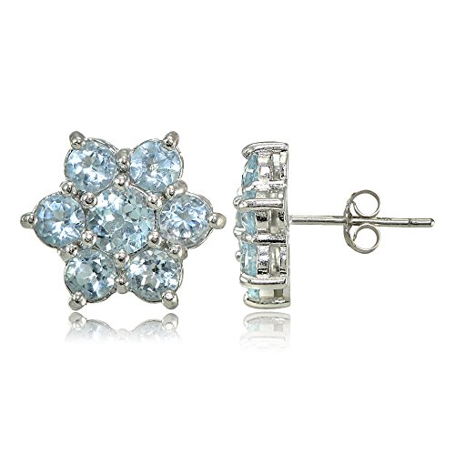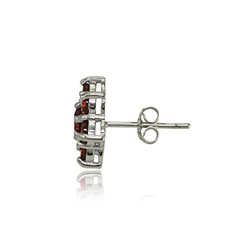 Sterling silver earrings feature flower-shaped clusters of round genuine garnet gemstones.