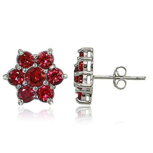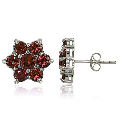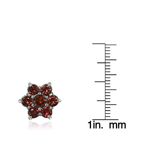 Simple and classic, these eye catching earrings are the perfect addition to any jewelry collection. These earrings features flower-shaped clusters of round garnet stones and is crafted of sterling silver. They are secured by post with friction backs.Feature