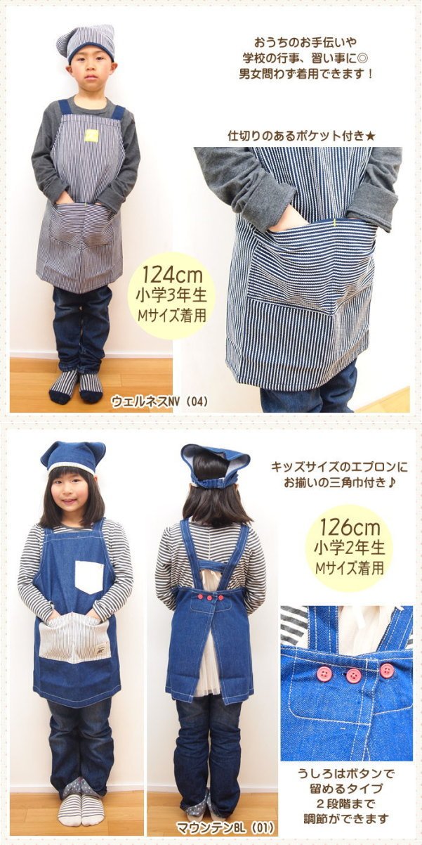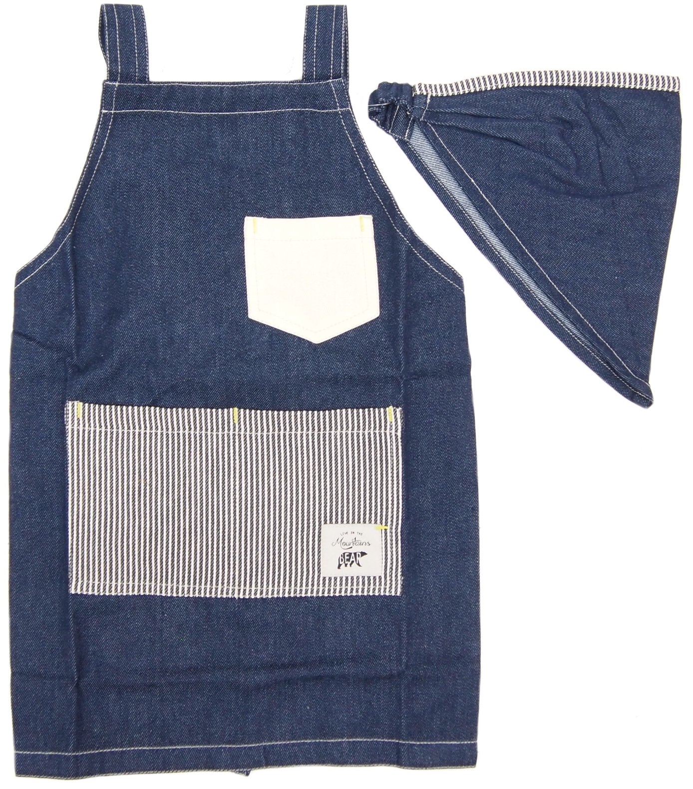Fashionable and cute apron with a simple design with a border pattern and denim 2 type with logo and pocket accents ♪