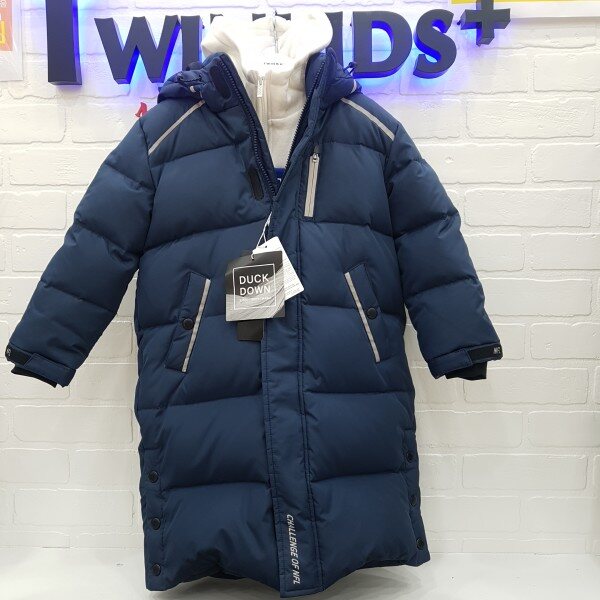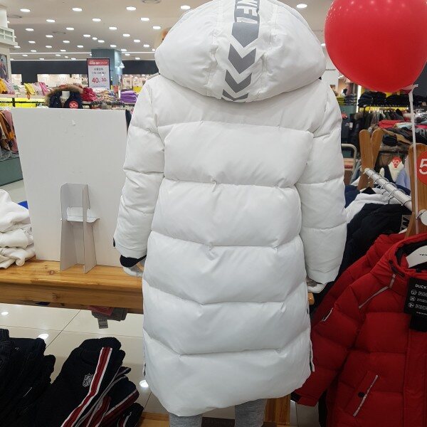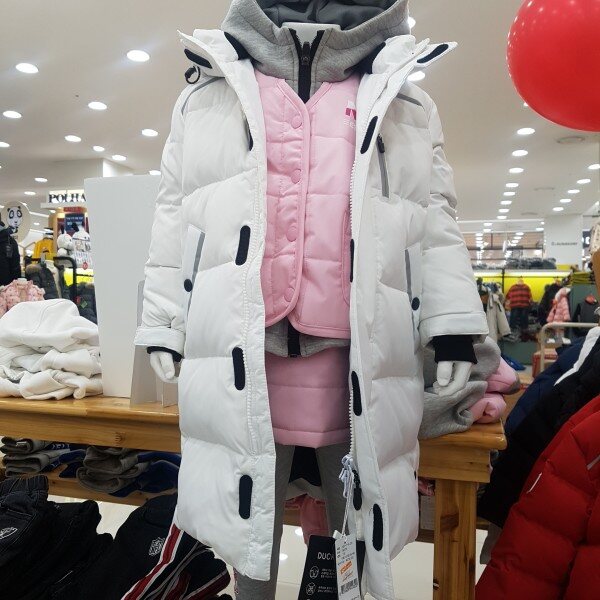 무릎덮는 기장의 오리털 점퍼 깔끔한 반사나염과 지퍼가. 포인트 밑단 양쬐에 스냅을 달아주어 착용시 활동이편함