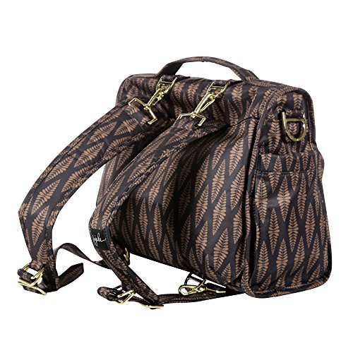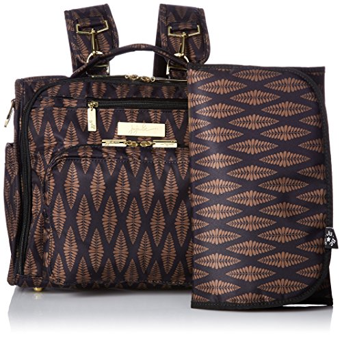 The Ju-Ju-Be Legacy Collection B.F.F. Convertible Diaper Bag provides multiple carrying and storage options to help you stay ultra-organized. Just like your B.F.F., this machine washable backpack is something you cannot live without! Designed with convenience and comfort in mind, this versatile bag can be carried using its top handle, over-the-shoulder strap or backpack straps. The memory foam straps have textured fabric underneath to prevent the bag from slipping off your shoulder. Keep organized and sane, while never sacrificing looking good! The bag's lining is protected with Agion natural antimicrobial treatment, which inhibits and reduces the growth of odor-causing bacteria, mold and mildew. The outer fabric is treated with Teflon fabric protector, so you can repel stains and keep it clean. The front "mommy" zippered pocket is large enough for smartphones, wallets, keys attach to the key fob stretch cord, and other personal items. Inside organization includes (4) gusseted pockets, (3) zippered pockets and lots of wide open space! The main zippered pocket is large enough for diapers, wipes, extra clothes and other items. The back pocket is designed with crumb drains to keep this area clean, is large enough to store your child's books, and includes a super cushy matching memory foam changing pad. Bottle pockets are located on either side of the bag and come insulated with Thinsulate by 3M to keep your items hot or cold. The Versailles print is black and brown with tan lining. The print is accented by gold, metal hardware, including luggage feet to keep the bottom of your bag clean when you set it down. With the B.F.F. Diaper Bag, you can choose to wear it as a backpack or messenger style - it’s your choice. Whichever you choose, the B.F.F. has your back, just like every B.F.F. should! All Ju-Ju-Be Bags come with a Lifetime Limited Warranty against manufacturing defects when purchased from an Authorized Ju-Ju-Be Dealer. Authorized Dealers can be found in the images. Founded in 2005, Ju-Ju-Be is a Southern California company that uses science, style, and attitude to create diaper bags, purses and other fashionable accessories. Ju-Ju-Be assimilated the most advanced technology possible to create a stylish and intelligent product line that's unrivaled in the industry.Feature