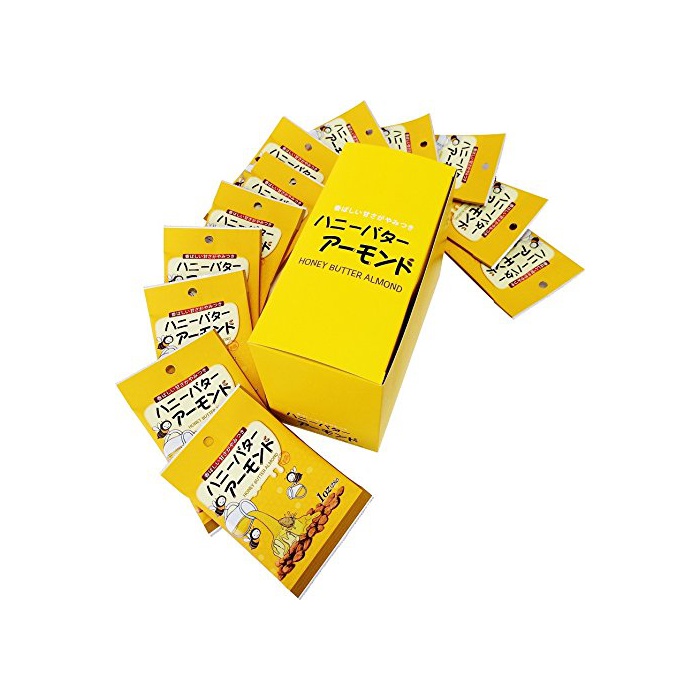 원재료:아몬드(미국산)고, 허니 버터 시럽(설탕,수 엿,벌꿀)고, 허니 버터 seasoning(허니 버터 맛 파우더(설탕,소금,버터 믹스 파우더,밀크 크림 파우더,그 외)