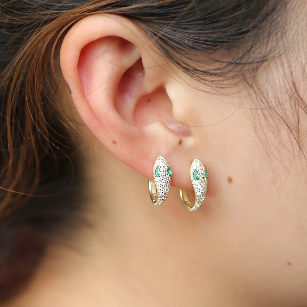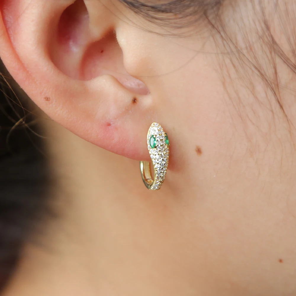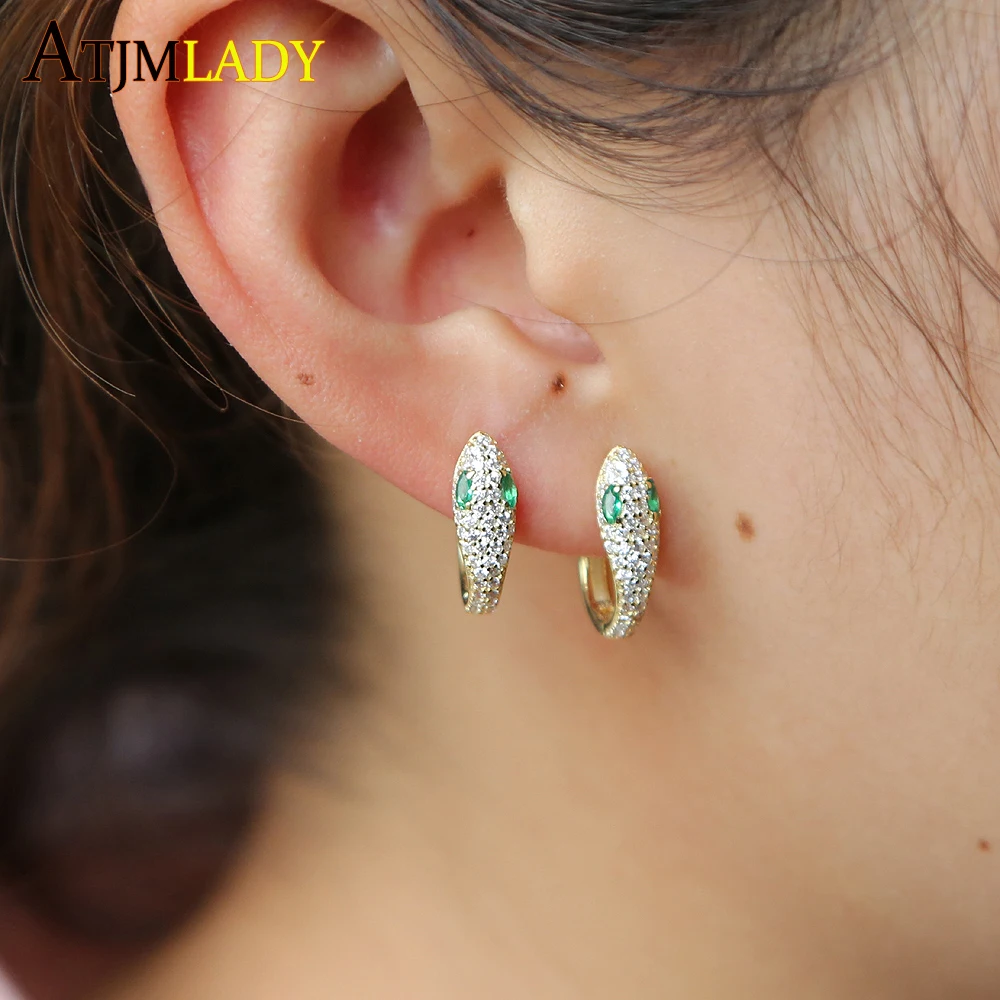 item name:2018 Real 925 Sterling Silver Design Classic Green CZ eyes Earring Lov