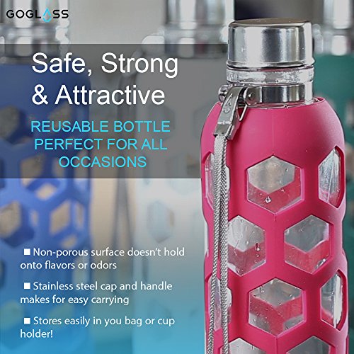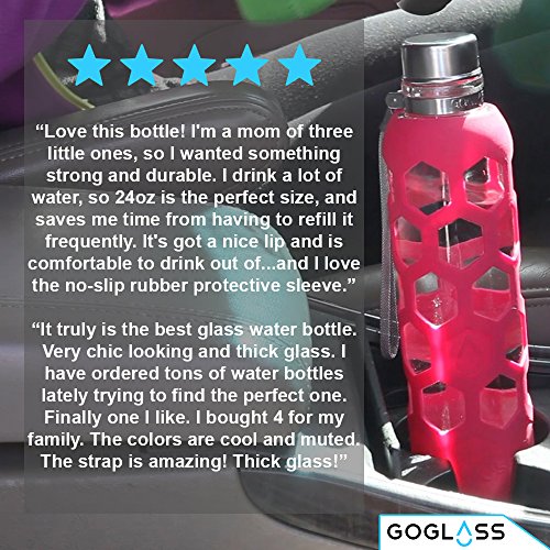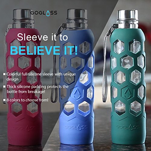 GoGlass Terra Borosilicate Glass Water Bottle With Silicone Sleeve 24oz, No Plastic, Modern Large Drinking Reusable Travel Bottles