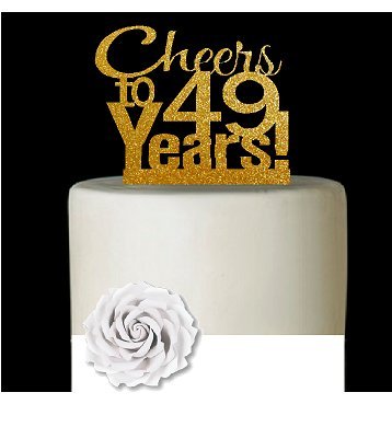 CakeSupplyShop Item#49CTA - 49th Birthday / Anniversary Cheers Super Gold Glitter Sparkle Elegant Cake Decoration Topper