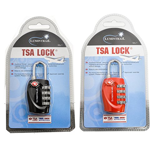 -. Title : 2 Pack Lumintrail TSA Approved All Metal International Travel Lage 4 Digit Resettable Combination Lock with 4-ft Steel Cable for Suitcase and Baggage - Assorted Colors