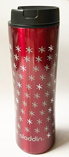 Aladdin 16 oz Double Wall Insulated Stainless Steel Travel Mug - Candy Apple Red & White Snowflake