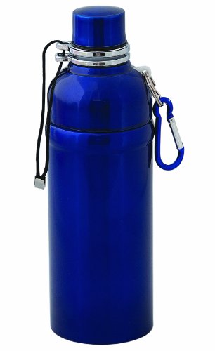 Studio : Budget Bags Inc Publisher : Budget Bags Inc Product Description 8.5" H x 2.75" Diameter. Stainless Steel. Holds up to 500 ml. (16 oz.). Wide opening with screw off lid and screw off top cap. Easy to add ice with wide mouth opening. Black cord keeps lid from getting lost. Silver key ring with matching coloured carabineer . BPA free (Bisphenol A) and FDA Compliant 0