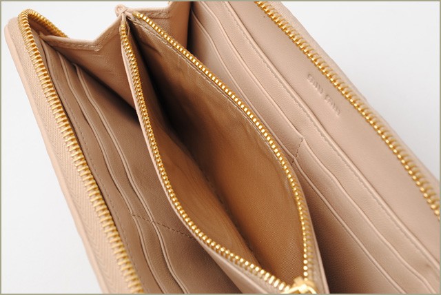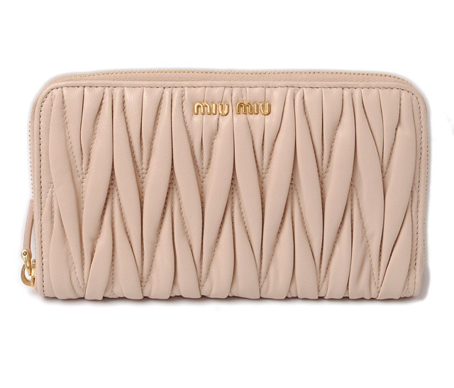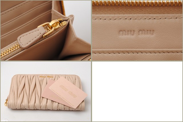 ミュウミュウ 財布miumiu 長財布 5M0506 MATELASSE'/マテラッセ CIPRIA/ベージュピンクミュウミュウより、定番人気の使いやすいデザインです。大人気のマテラッセラインがゴージャスな印象に!独特のシワ加工を施したレザーで立体感を持たせ、ふんわり感のある触り心地が女性に人気です。とっても機能性に優れたお財布で、ポケットがたくさんあり、充実の収納です。財布の中身が多くなりがちな方にもオススメ!商品名 ミュウミュウ 財布miumiu 長財布 5M0506 MATELASSE'/マテラッセ CIPRIA/ピンクベージュ 商品番号 miu-16-072 ライン サイズ 約:W18.5×H10.5×D2 (cm) 素材 MATELASSE/マトラッセ カラー 本体:CIPRIA/ピンクベージュ金具:ゴールド 参考定価 - 付属品 ギャランティカード、箱 製造番号 特徴 【 外側 】○ラウンドファスナー式開閉【 内側 】○オープンポケット×2○カードポケット×8○札入れ/コンパートメント×2○ファスナー式小銭入れ -商品状態-程度 :ランクNS○アウトレット品、未使用品。○未使用品となっておりますが、若干程度の、経年劣化・スレなど予めご了承くださいませ。【 外側 】○未使用品。○目立つような傷や汚れはありません。綺麗な状態です。【 内側 】○未使用品。○目立つような傷や汚れはありません。○すれ、薄いひっかき傷のある箇所があります。注意!○海外直営アウトレット店よりの輸入のため、輸送の途中、箱に、つぶれ・変形がある場合がございます。何卒、ご理解・ご了承いただけます様お願いいたします。
