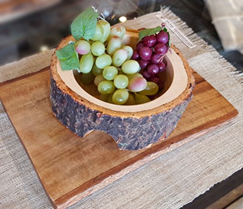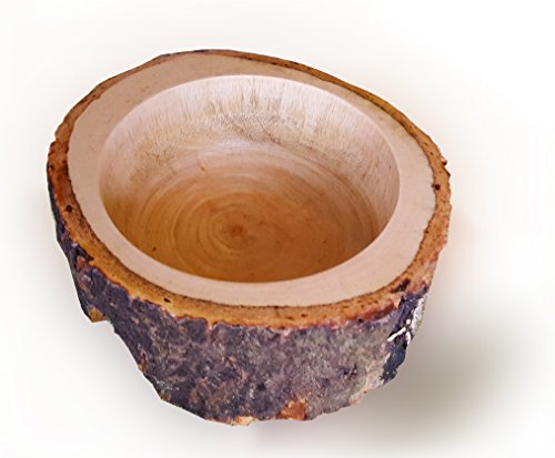 RoRo 7 Inch Hand-carved Guacamole Salsa Soup or Cereal Bowl with bark made from sustainable orchard wood (Natural)