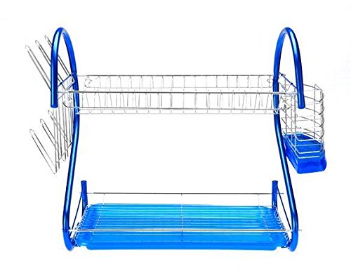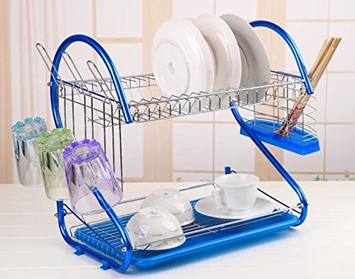 A Must for Home & Kitchen: The rack has 2 Tiers and a bottom tray so that it won't leave any wet messes on your counter. There's a cutlery holder on the side and a rack that gives you enough space to dry all of your washed and cleaned dishes