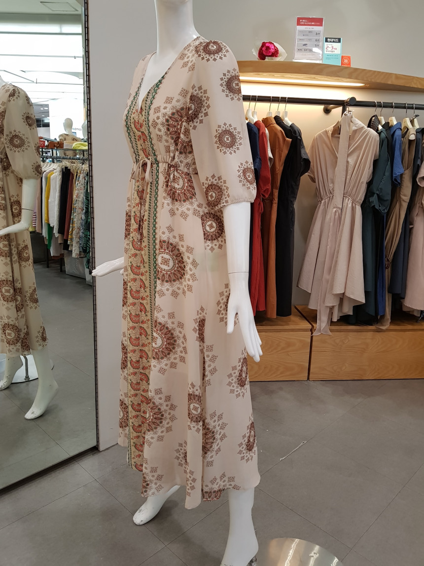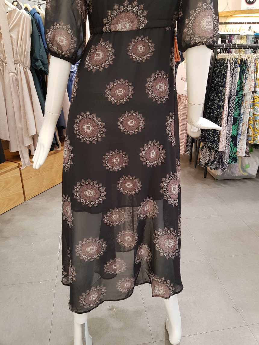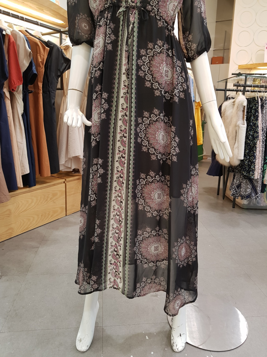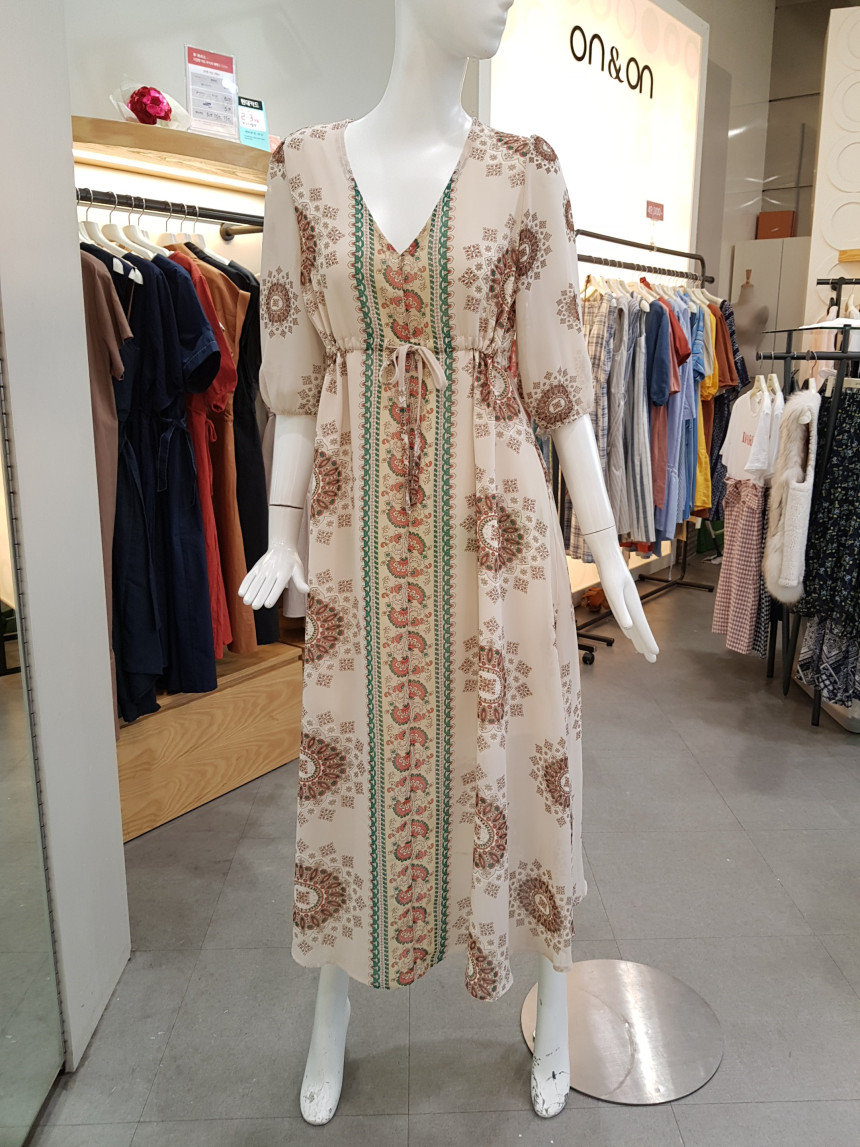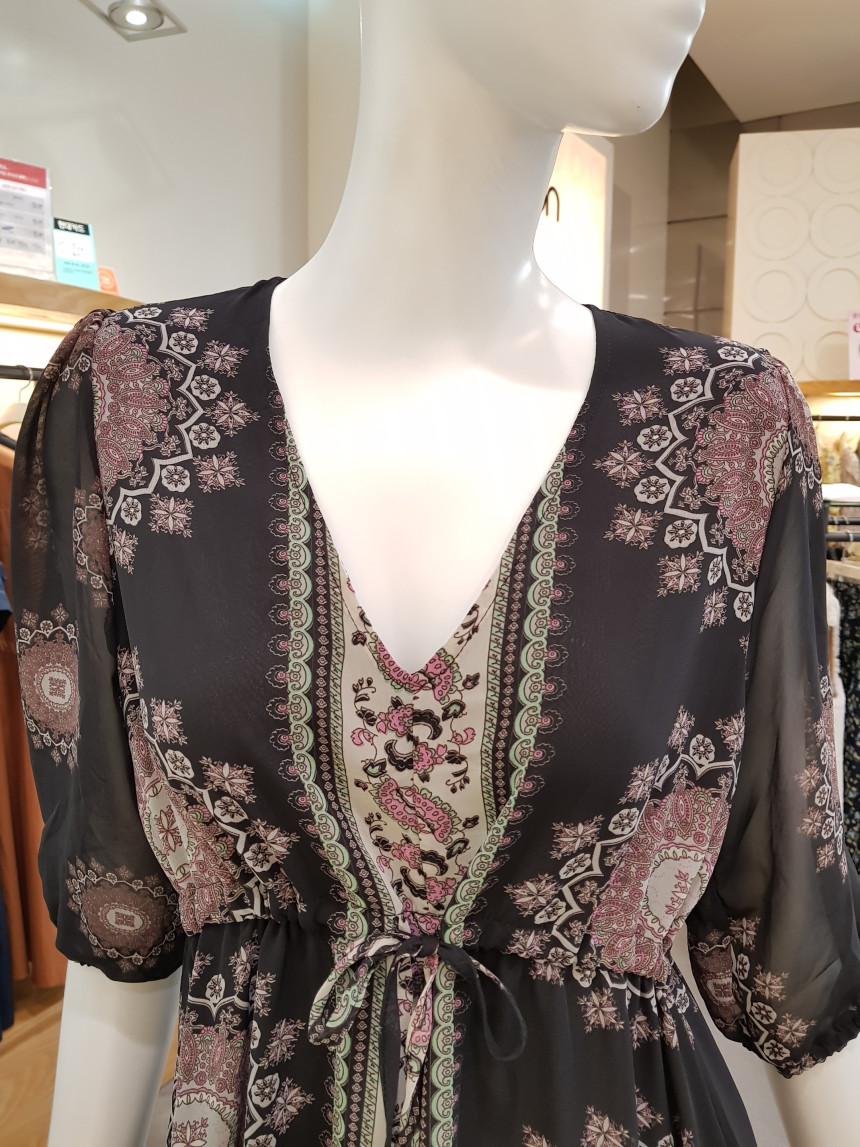 에스닉 패턴의 V넥 롱 시폰 원피스에요^^
