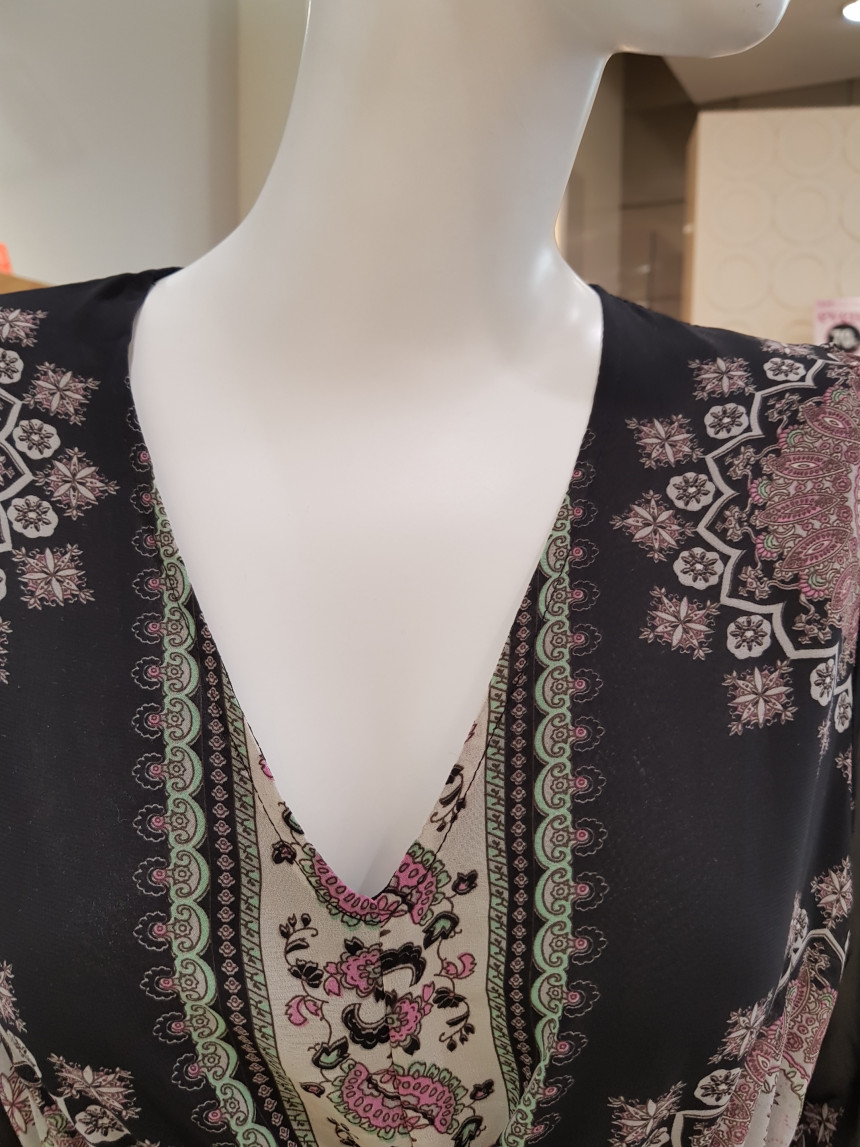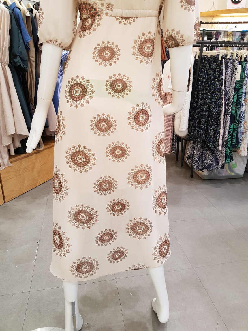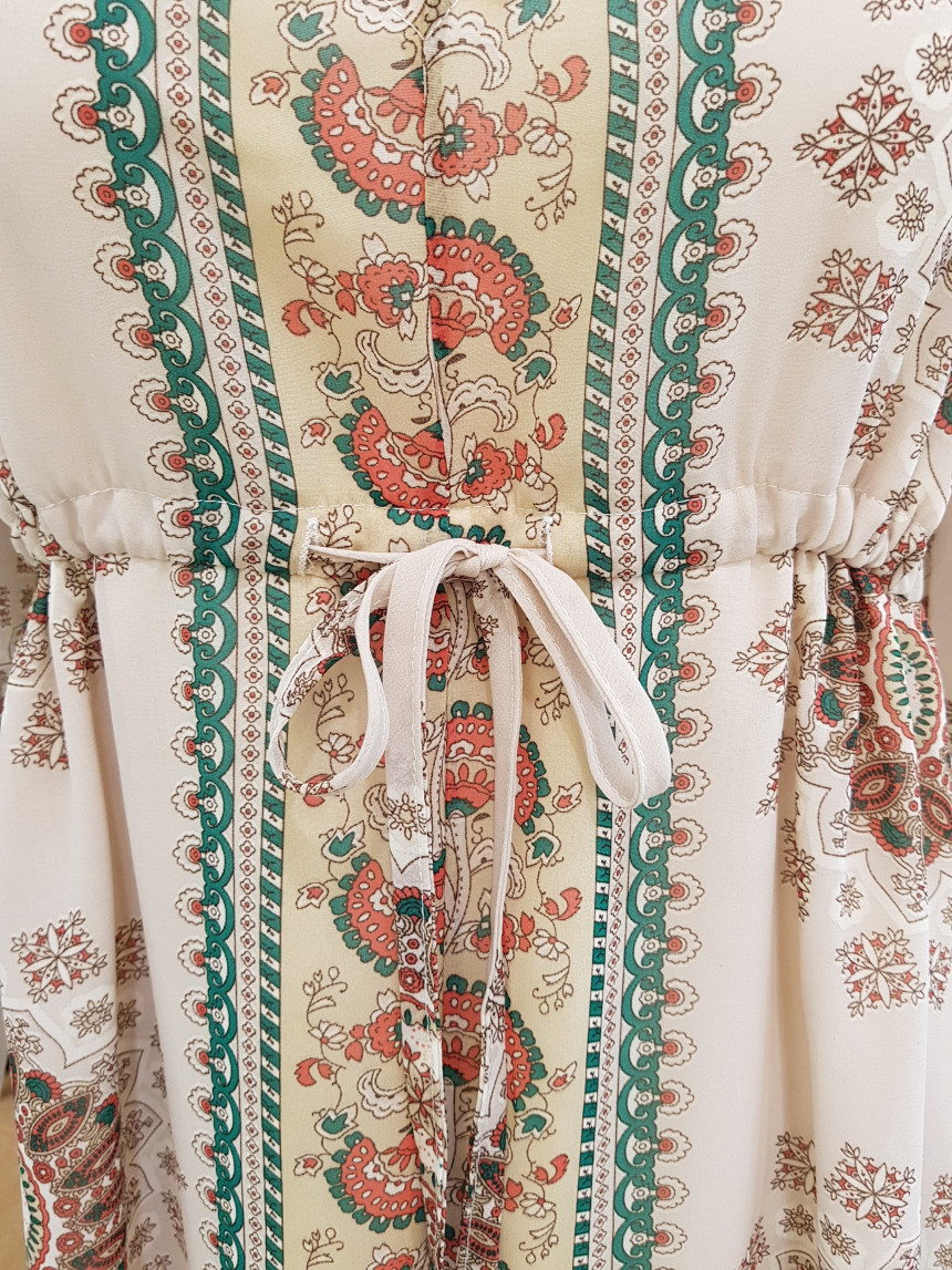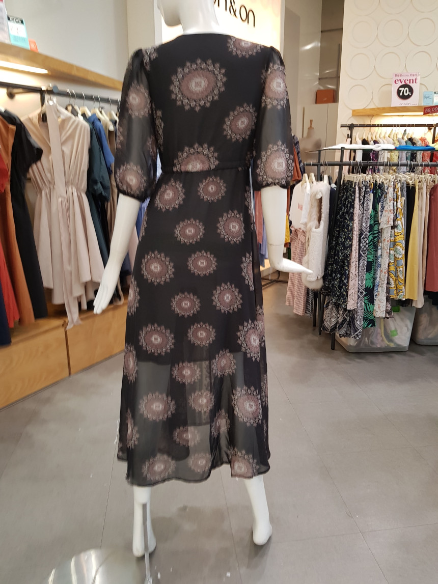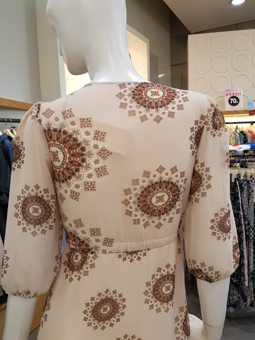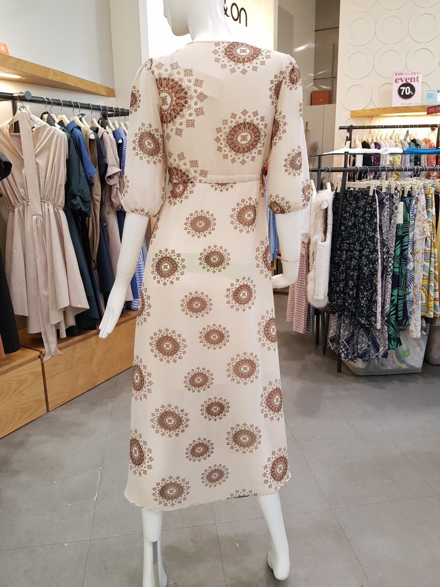 에스닉 패턴의 V넥 롱 시폰 원피스에요^^