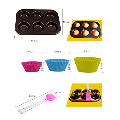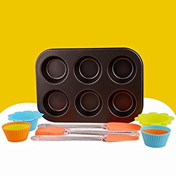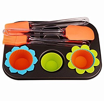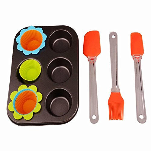 - Package content:3-piece set of flexible silicone spatulas and brush,6-piece set of Cupcake Liners, a Cake Baking Pan