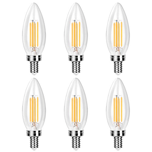 Ascher E12 LED Classic Candelabra Clear Light Bulb 4W, 470lm Equivalent 40W, Non dimmable, Warm White 2700K Chandelier Bulbs, Filament Clear Glass, Pack of 6
