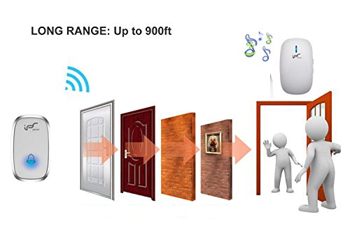 Long Range: Wireless range up to 900 feet in open space, long enough to mount the doorbell kit as your will. Do not miss any visitors. It can be used as paging devices for residents care and the elderly care.