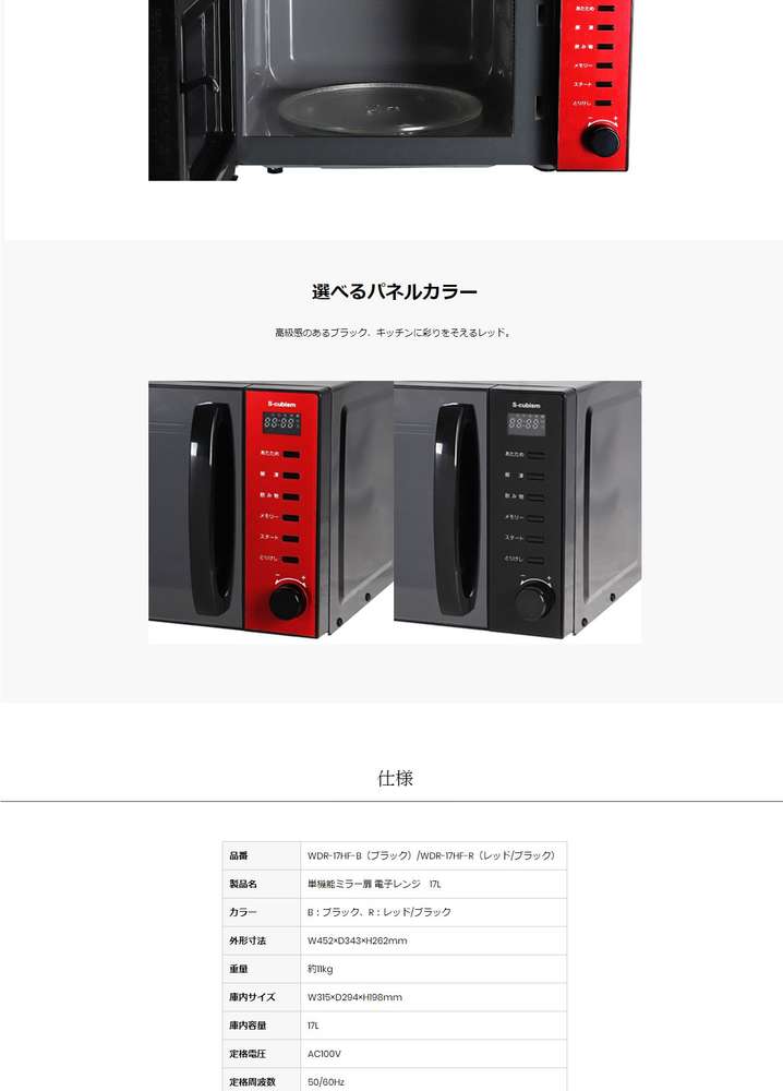 ●製品名 : 単機能ミラー扉 電子レンジ 17L
