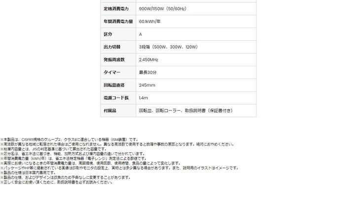 ●付属品 : 回転皿、回転ローラー、取扱説明書(保証書付き)