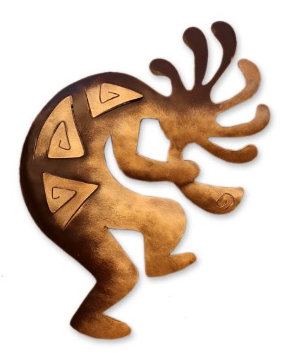 NOVICA Brown Decorative Steel Iron Wall Mural, 'Kokopelli Peace'