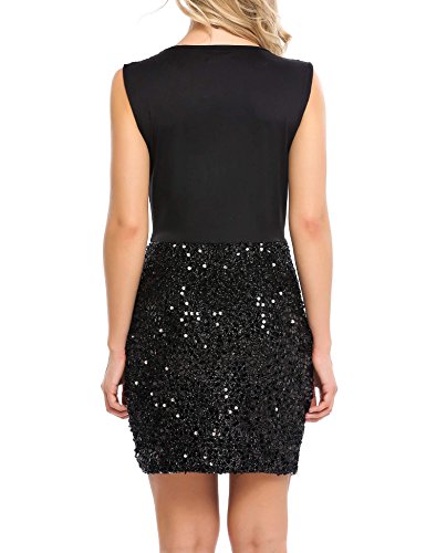 Womens Sexy Plunging V Neck Sleeveless Sequin Bodycon Mini Dress,