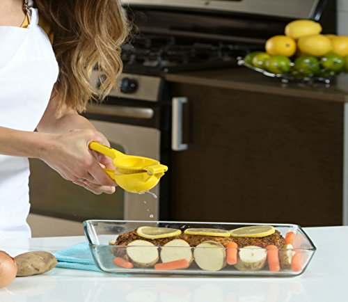 Have you ever used a complex big electronic juicer machine to juice citrus fruits like a lemon, only to be left with a ton of seeds and pulp to clean up afterwards? Whether you just enjoy simplicity, convenience, or practical juicing, we know you want a hands on manual lemon squeezer that just juices lemons. 100% Satisfaction Guarantee! - Our lemon squeezer is backed by our manufacturer lifetime money back guarantee warranty. Compact Heavy Duty Handheld Squeezer - A small, mini manual juicer that is dishwasher safe, fits into utensil rack, and portable to take with you on the go. Quick Setup and Easy to Use - Includes step-by-step instruction guide to get the best use out of your premium individual lemon-squeezer and practical tips on how to use lemons to enrich your daily life. High Quality Diecast Aluminum with Yellow Coating - Stands out distinctly amongst your other stainless steel utensils and kitchenware with a bright yellow color and you can quickly pick up with your hand. Squeeze Fresh Lemon Juice from Lemons 100% each and every time - Whether you are in the comforts of your home kitchen or anywhere in the world you travel to, comes in a portable packaged box that you can just throw in your bag and carry with you. Add a Splash of Refreshing Lemon Citrus - To cocktails, marinades, dressings, and grilled meats or create lemonade. If you love to cook, juice, and like quality kitchenware - ADD TO CART TODAY! 0 |