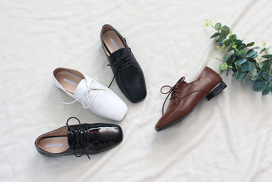 스퀘어라인을 발이 작아보이고 레이스업 (신발끈) 으로