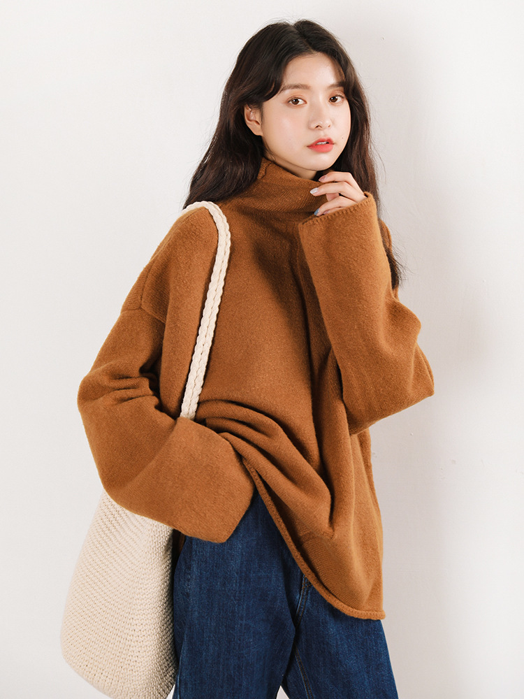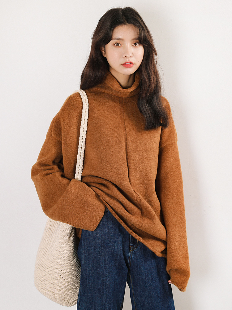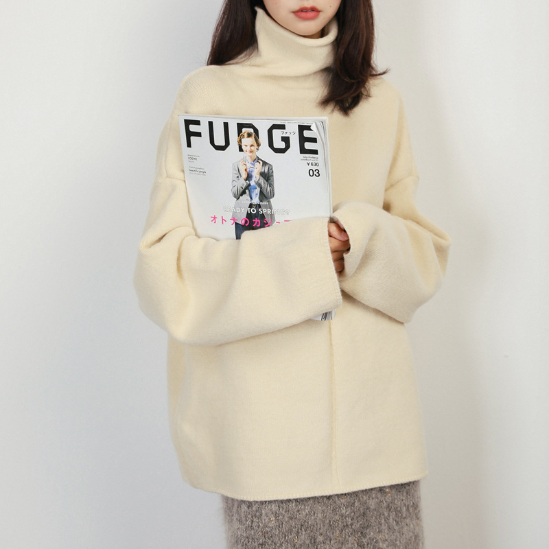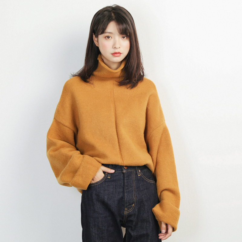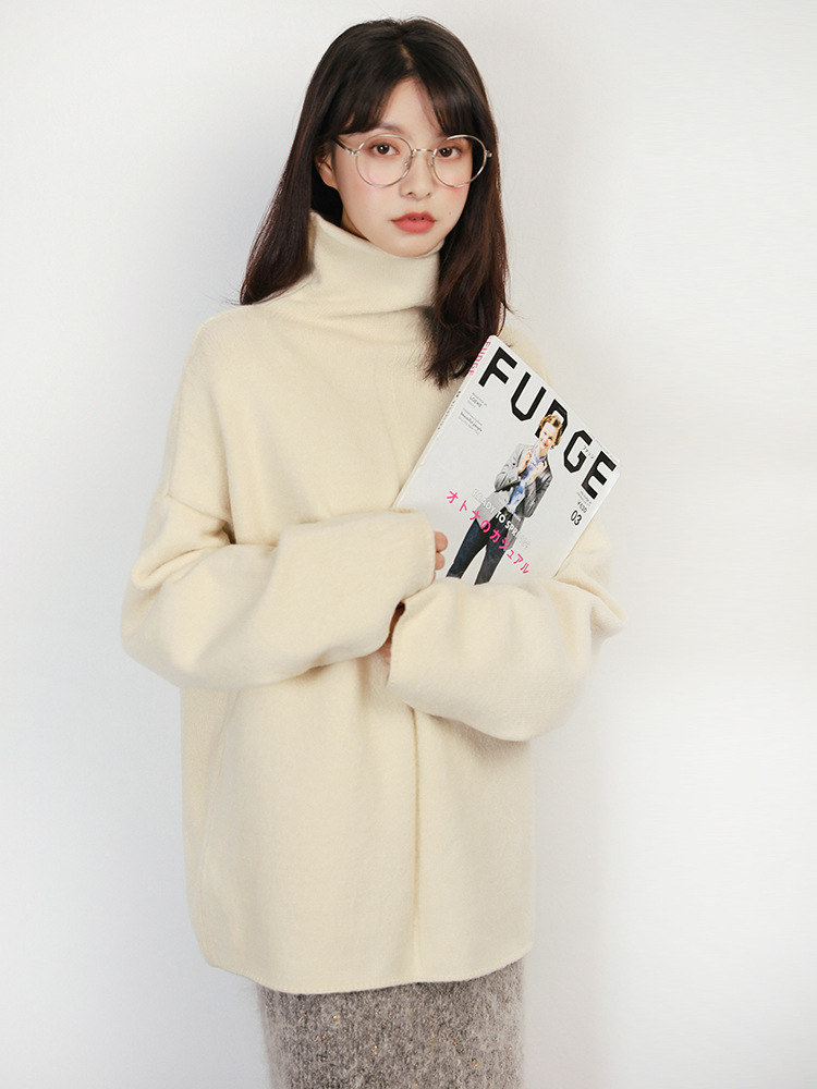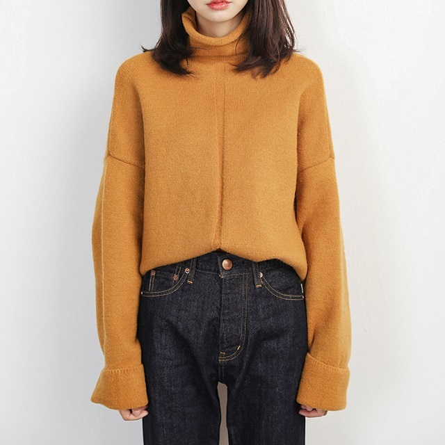 ざっくりとしたタートルネックがこなれ感を漂わせるシンプルニットトップスです。