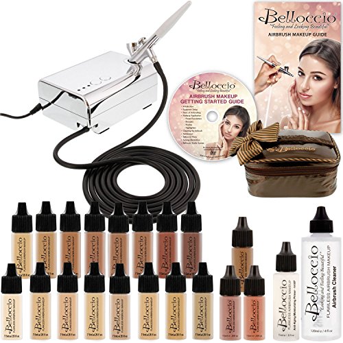 -. Binding : Misc. -. Brand : Belloccio -. EAN : 0844925006200 -. Feature : An ideal system for those looking to get started in the world of cosmetic makeup airbrushing. / You'll find that it's easy to get the natural "perfect look" that you desire every day / Belloccio offers a professional line of Affordable, Flawless Natural Look High Definition Makeup / Perfect for a wide range of uses from daily wear and bridal makeup to high definition close-ups / It's also the quick and easy way to apply your makeup. -. Label : Belloccio -. Manufacturer : Belloccio -. ManufacturerPartsWarrantyDescription : Parts -. MPN : KIT-16 -. PartNumber : KIT-16 -. ProductGroup : Beauty -. ProductTypeName : BEAUTY -. Publisher : Belloccio -. Studio : Belloccio -. Title : Belloccio Airbrush Makeup System All 16 Foundation Colors with Compressor, Hose, Foundations, and Carrying Bag -. UPC : 844925006200