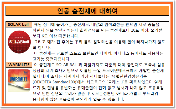 발열패딩 WARM LITE 사용으로 보온성 강화