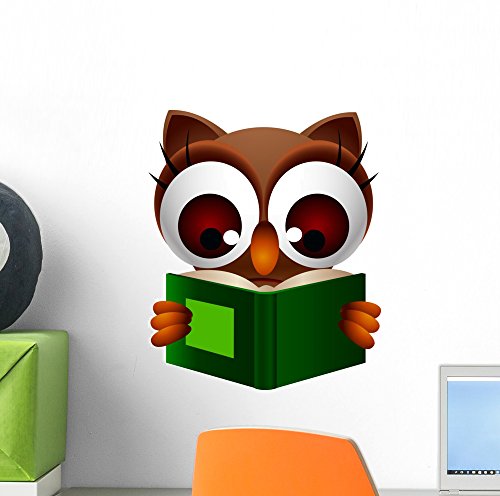 Cute Owl Reading Book Wall Decal by Wallmonkeys Peel and Stick Graphic (12 in H x 10 in W) WM163963