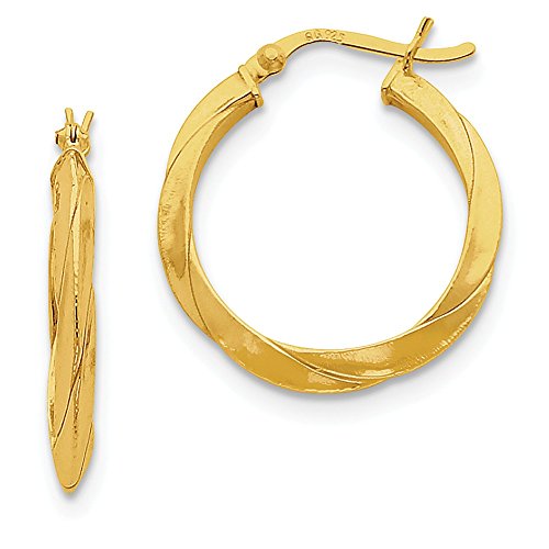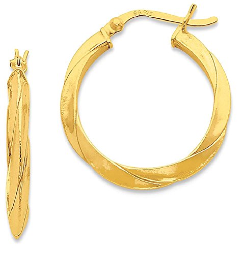 ICECARATS DESIGNER JEWELRY 925 STERLING SILVER GOLD FLASHED KNIFE EDGED TWIST 25MM HOOP EARRINGS EAR HOOPS SET FOR WOMEN