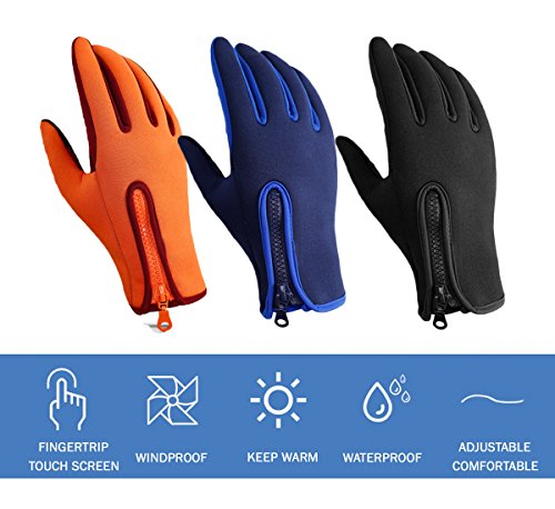 Studio : Nurbijar Publisher : Nurbijar Product Description Nurbijar winter warm gloves suitable for multi-purpose athletic use for running, cycling, hiking, driving, and other cold weather outdoor activities. They can keep your hands warm and dry in winter. They can well protect you against wind and provide you a more comfortable cycling experience. There are 3 colors and 3 sizes for your options, orange (M, L, XL), blue (M, L, XL), and black (M, L, XL). FEATURE: Material: Nylon composite fabric Gender:Unisex Shape: Full-finger Function:Windproof, waterproof, warm, anti-slip, screen touch, adjustable,elastic