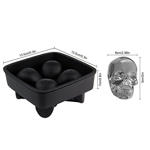 3D Skull Ice Cube Mould Tray, Pawaca Food Grade Flexible Silicone Ice Cube Maker for Bar Party, Makes Four Giant Skulls