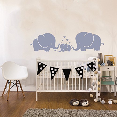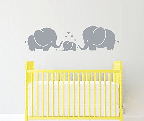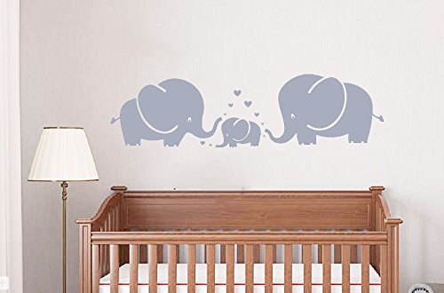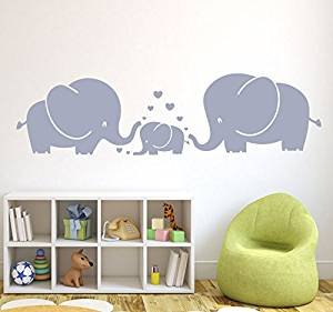 LUCKKYY Cute Three family Elephant Wall Decals for kid Room Room Decor Baby Nursery (Gray)