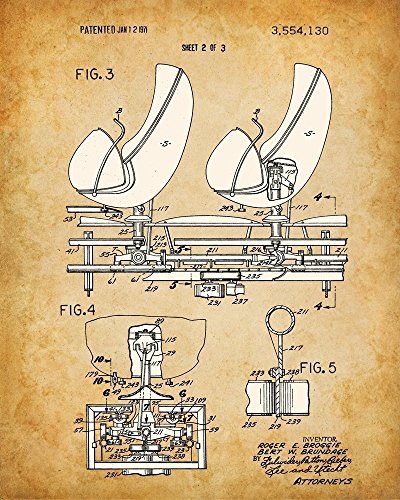 Bring a little whimsy to your household. These four prints show patents filed between 1960 and 1994. The original patent artwork has been reinterpreted by award winning artist Norm Lanier.