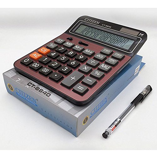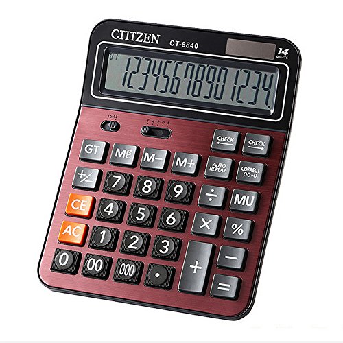 -. Title : e-cholife Calculators,14 Digits Black Large LED Display Solar Power Standard Destop Calculator with Check Function(red, medium)