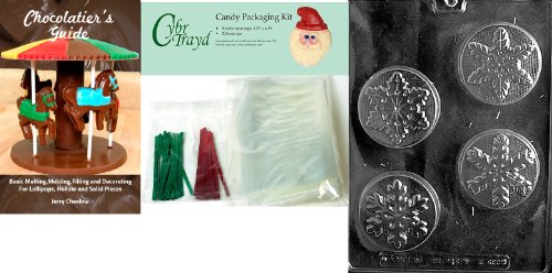 Cybrtrayd Snowflake Chocolate Mold with Chocolatier's Bundle of 50 Cello Bags, 25 Green and 25 Red Twist Ties and Chocolatier's Guide