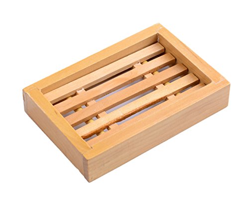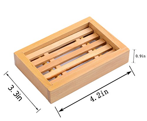 -. Feature : Each soap dish is made of Pine wood , handmade. / Bottom design Drain excess water from soap dish into sink,keeping soap well-ventilated,clean and dry. / Dimensions:4.2 x 3.3 x 0.8 inches , Weight:1.52oz , Packed by carton. / No smell ,it is placed onto whatever surface , for bathroom and kithchen. / A 100% money back guarantee,free lifetime replacement.