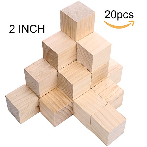 Supla 20pcs 2 inch Wooden Cubes Unfinished Wood Blocks for wood crafts, wooden cubes, wood blocks, Great for Baby Showers (20pcs)