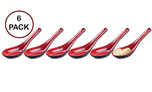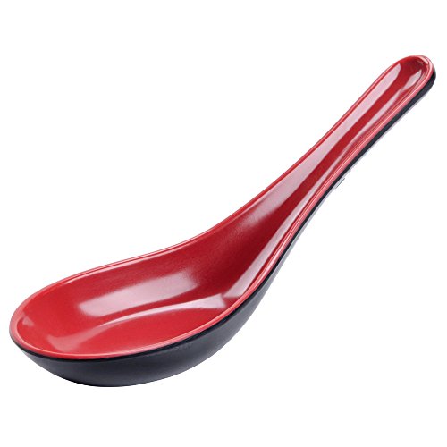Tiger Chef Asian Red and Black Melamine Won Ton Soup Spoon Soba Rice for restaurants, sushi bars (6)