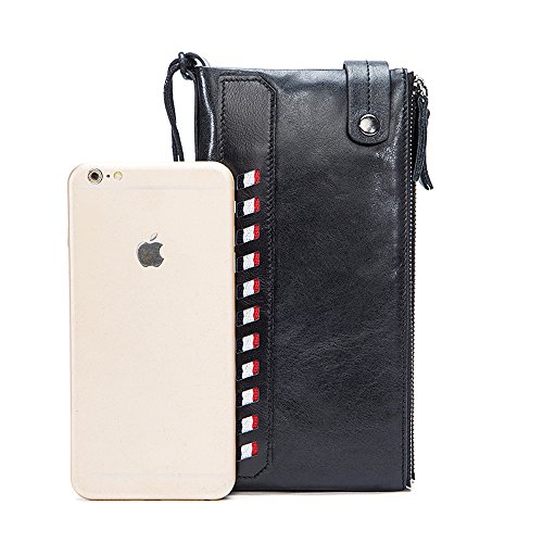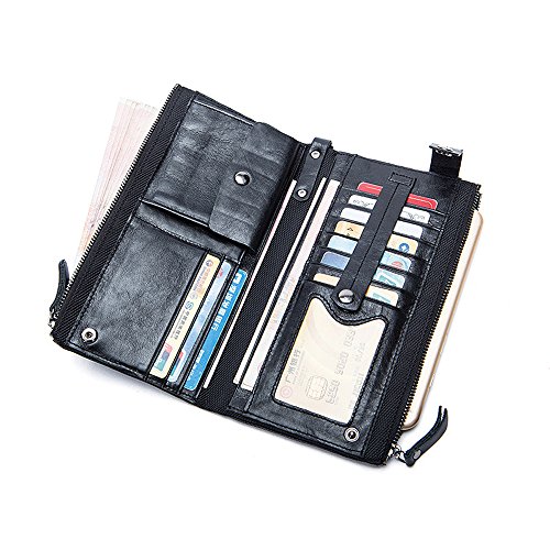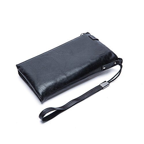 NBSAMENG Men's Long Leather Wallet Zipper First Layer Of Leather Handle Bag
