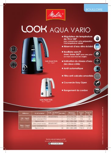 Lieferumfang: 1 Melitta H 203-010304 weiss/silber Look Aqua Vario Wasserkocher. Erhaltlich auch in schwarz/silber. HxBxT: 25,4x22,4x16,3cm Gewicht: 1kg.
